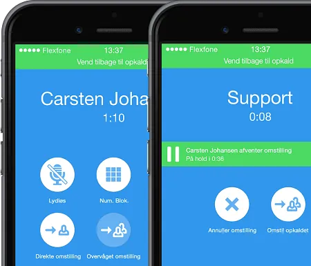 Med Myfone app´en kan du nemt omstille et opkald, så dine kunder altid får den hjælp, de har brug for. Omstillingen foretages nemt og hurtigt, og du vælger selv, om omstillingen skal foretages direkte eller overvåget.